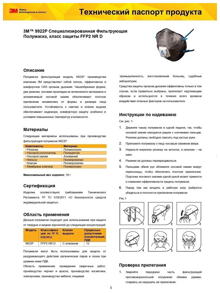 Респиратор 3М 9922Р, 10 шт 1 900 ₽ Подробнее