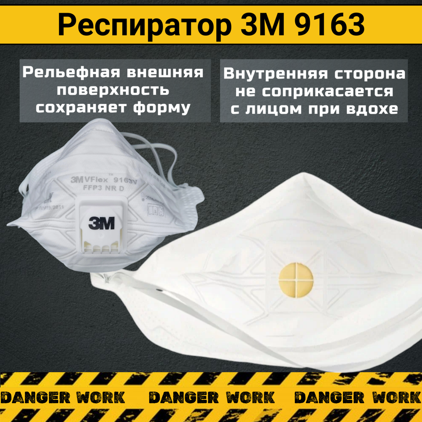 Респиратор 3M 9163V для защиты органов дыхания с клапаном FFP3 (10 штук) в запечатаной заводской упаковке