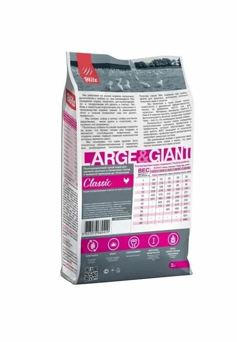 Корм для собак Корм сухой BLITZ Classic Puppy Large & Giant Breeds 2 кг, для щенков крупных и гигантских пород (курица) полнорационный
