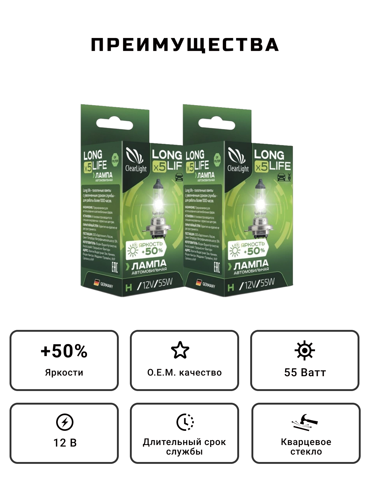 Лампа Clearlight H7-12-55 Long Life