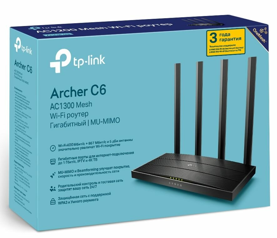 Гигабитный роутер Wi-Fi TP-Link Archer C6 V4 AC1300 Mu-mimo Archer C6 V4 .