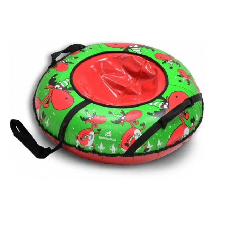 Санки Тюбинг ТяниТолкай Веселый олень 83 см (тент), зеленый/красный