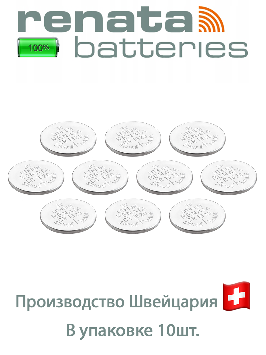 Батарейка Renata CR1620 3В Литиевая, в упаковке: 10 шт.