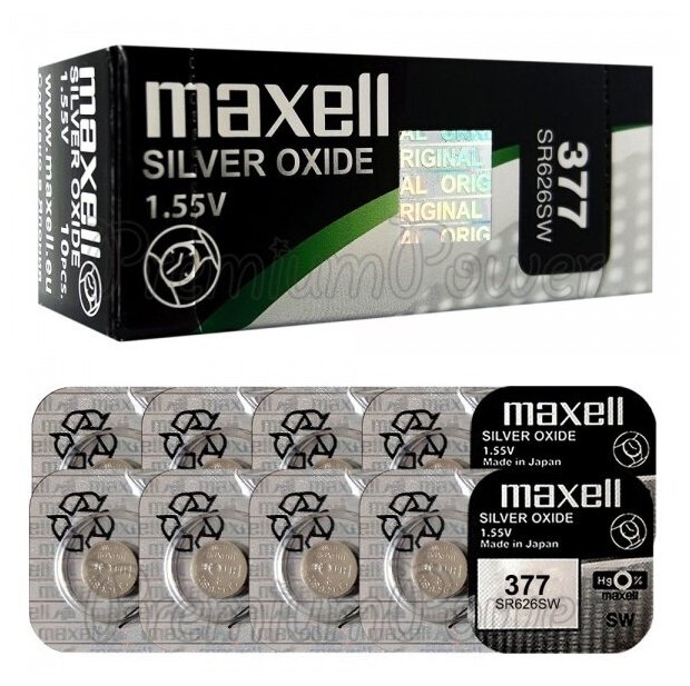 Maxell 377 (SR626SW) | 1.55 Вольт, Оксид Серебра (silver oxide) батарейки - 10шт. 688 ₽ Подробнее