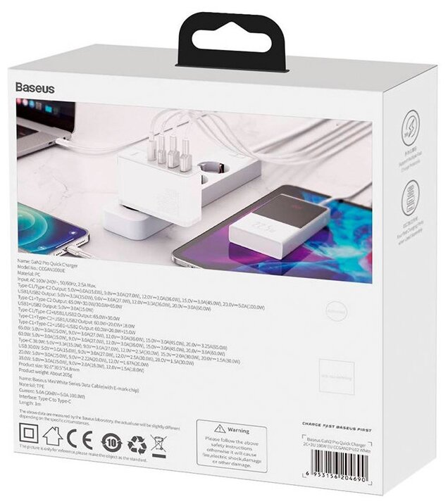 Зарядный комплект Baseus GaN2 Pro Quick Charger 2C+2U, 100 Вт, белый