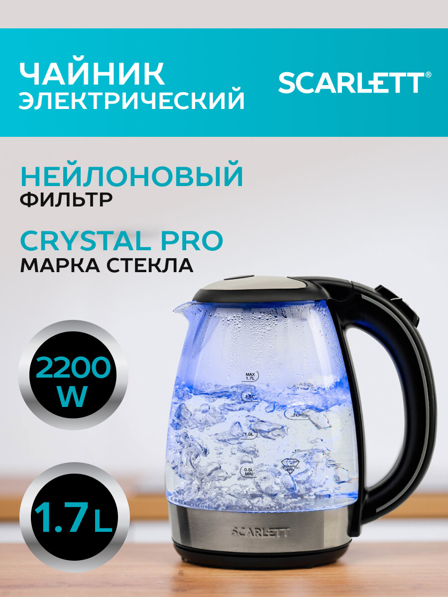 Чайник электрический Scarlett 1,7 л, 2200 Вт, с подсветкой, стекло, пластик (SC-EK27G93)