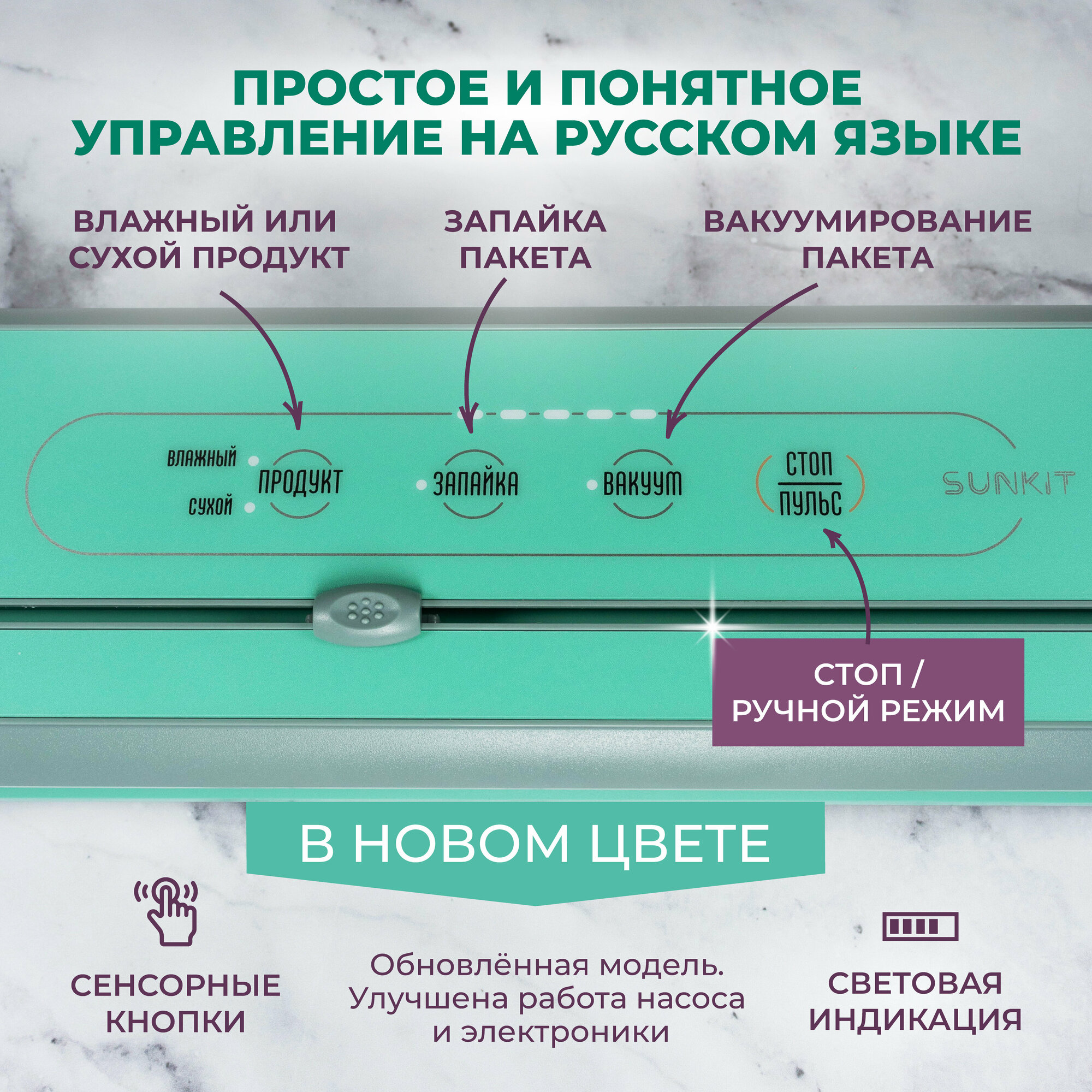 Вакуумный упаковщик SunKit SealMe S-60 с резаком, управление на русском, 7 режимов работы, мощный насос / Домашний вакууматор для продуктов - Бирюзовый 4 990 ₽ Подробнее