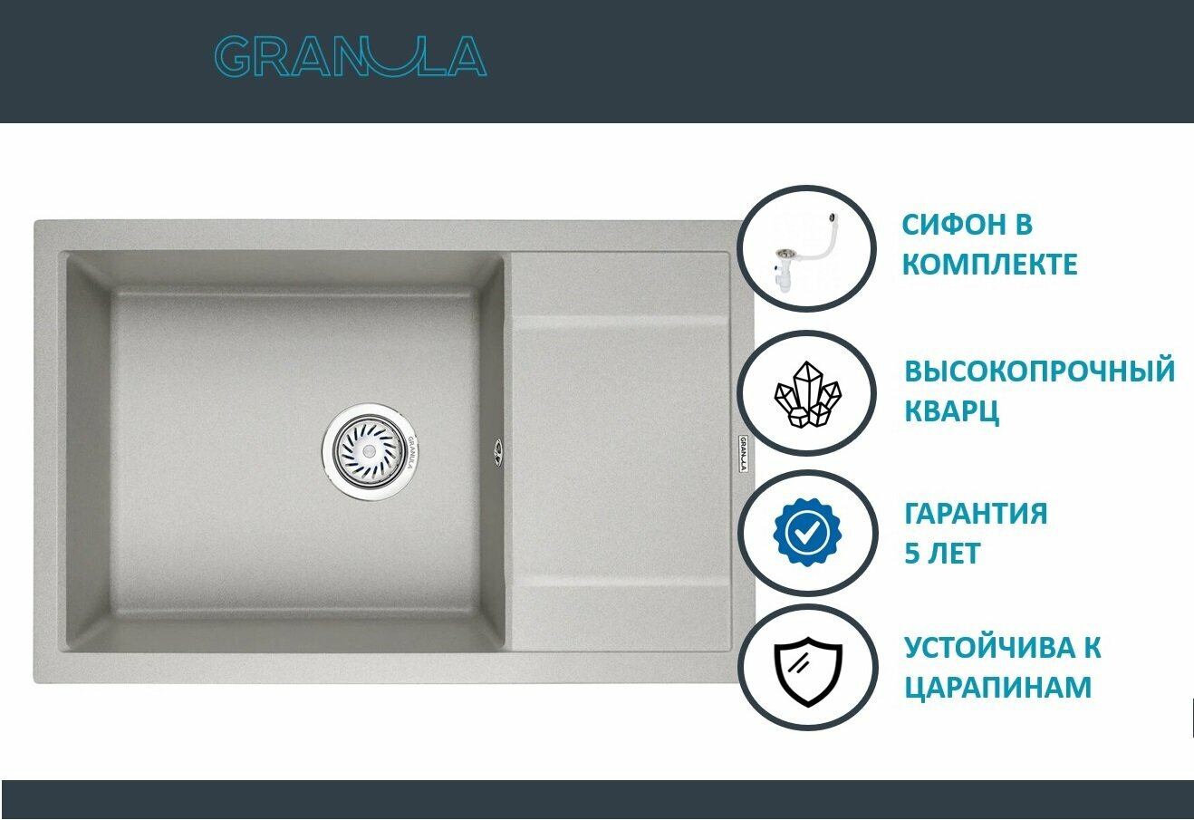 Лучшие цены. Мойка российского производителя Granula - Вместительная и функциональная чаша, удобная в использовании и простая в уходе! Изготовлена из кварцевого песка и устойчива к царапинам, абразивам, а также к механическим ударам. Легко моется и не боится пятен. Устойчива к высоким температурам и идеально прилегает к столешнице. Гарантия - 5 лет! Данная модель представлена в 10-х цветах. Упакована в фирменный картонный короб. Магазины в вашем городе.
