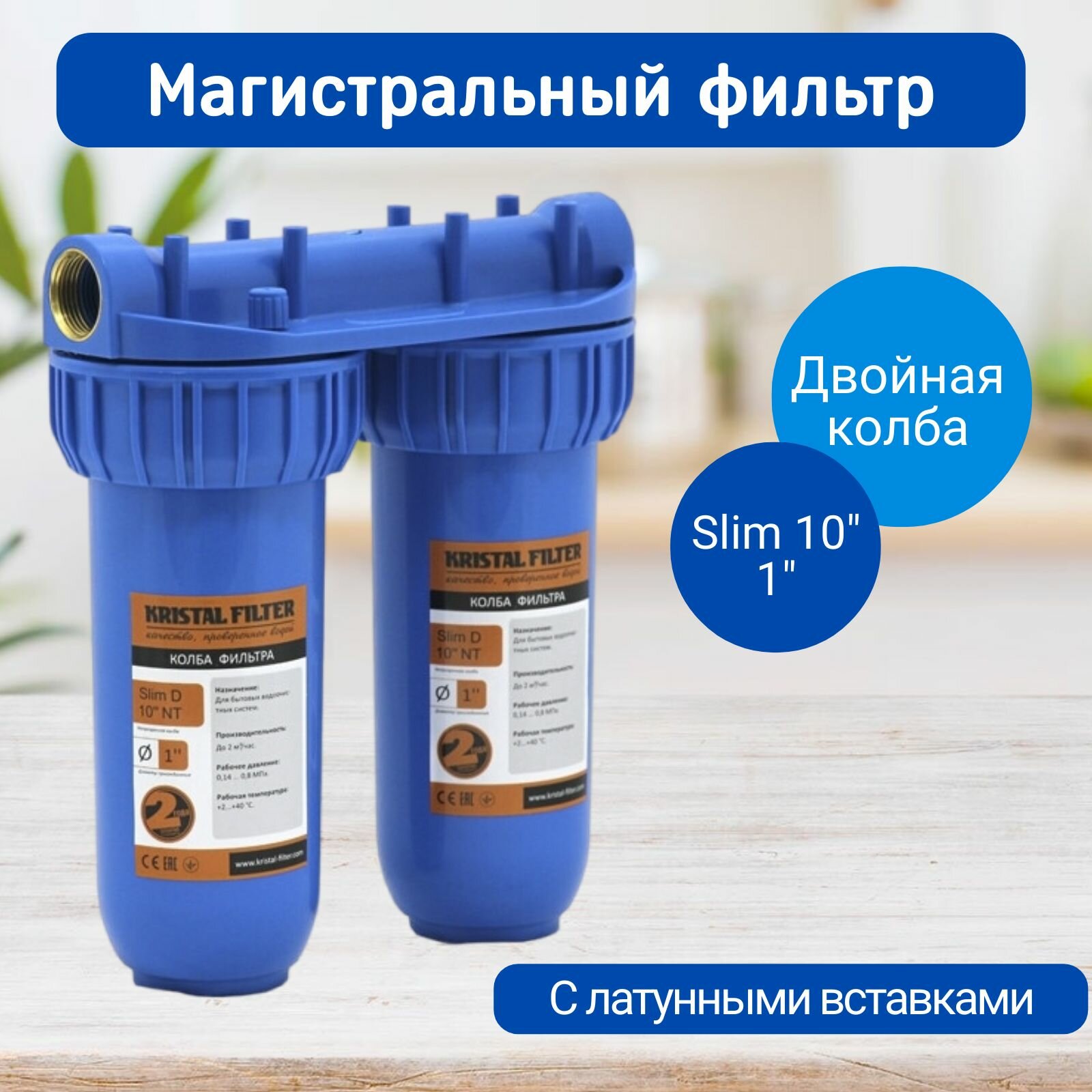 Фильтры для воды Магистральный фильтр двойной NT1, Slim D10 Kristal Filter, фильтр для воды