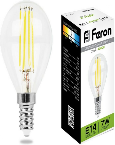Лампа светодиодная филаментная Feron E14 7W 4000K Шар Прозрачная LB-52 25875, цвет /, материал /