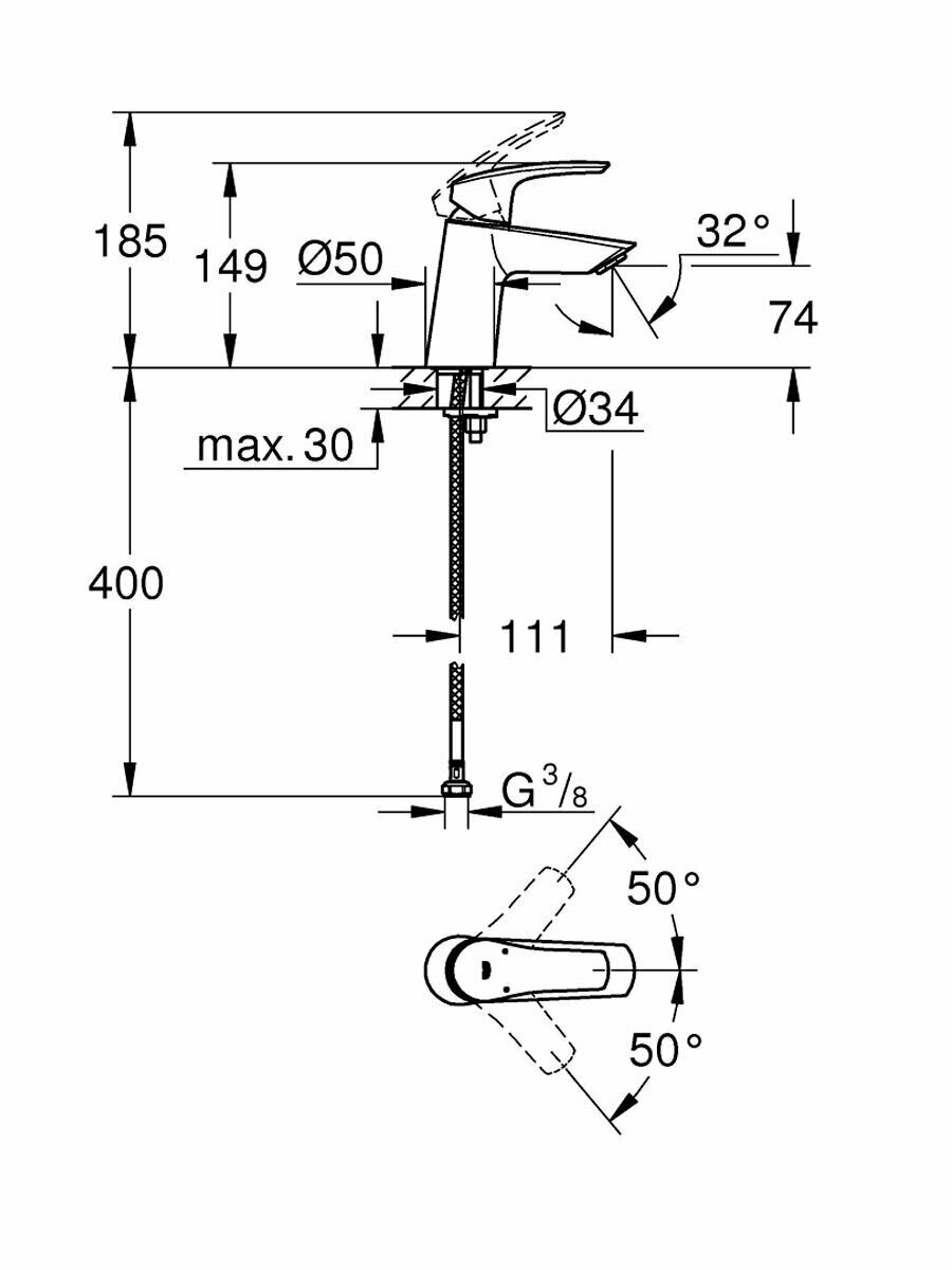 Смеситель Grohe 23 967 003 Eurosmart 2021 Смеситель для раковины 74 мм, гладкий
