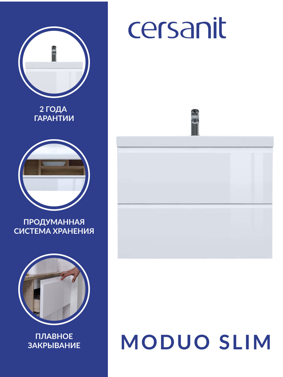 Лучшие цены. Подвесная тумба под раковину Cersanit Moduo Slim 80 SB-SZ-MOD-MO80Sl/Wh.