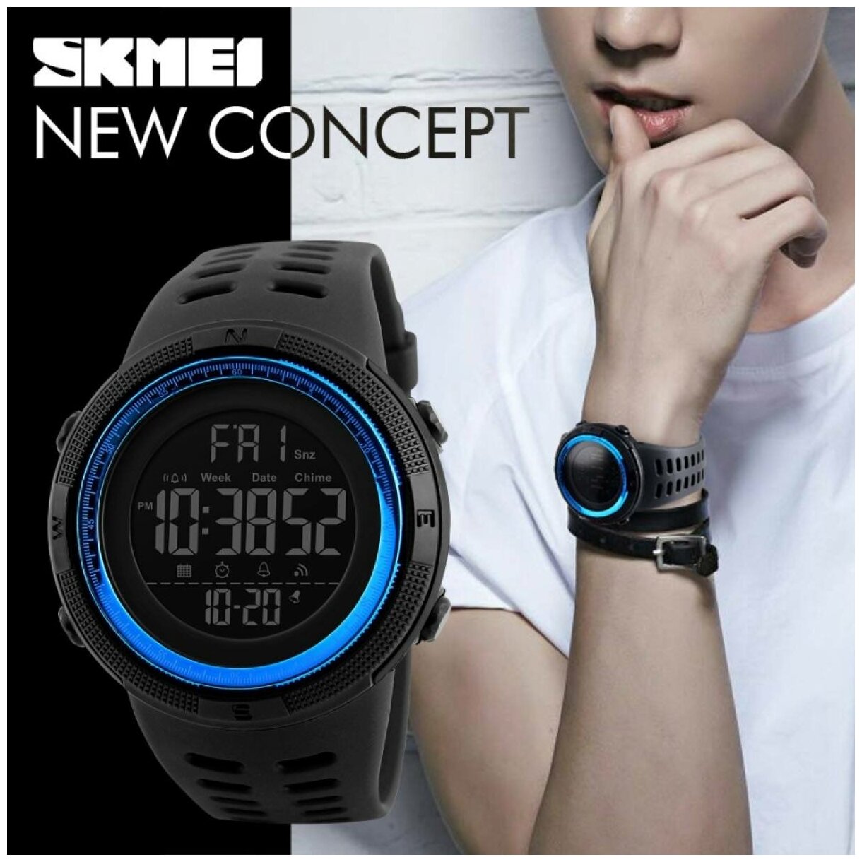 Часы спортивные SKMEI-1251 черный-синий, с секундомером, будильником, таймером, водонепроницаемые, скмей