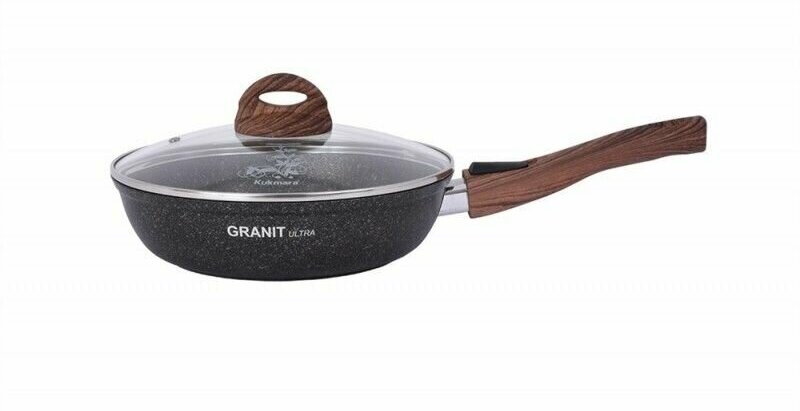 KUKMARA Сковорода Granit ultra, d=26 см, стеклянная крышка, съёмная ручка, антипригарное покрытие