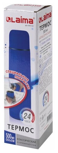 Термос Laima классический с узким горлом, 0,5 л, нержавеющая сталь, синий, 605122