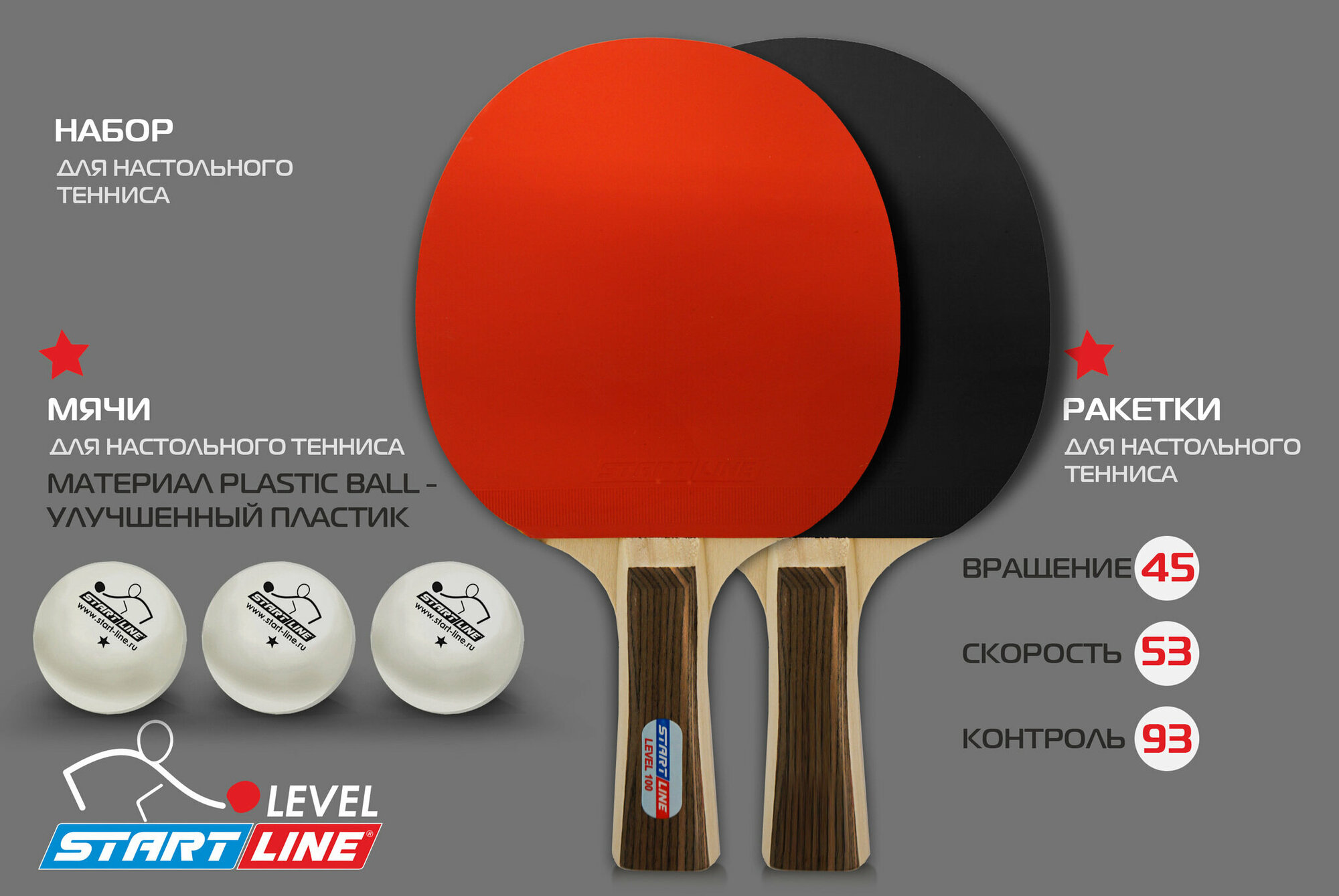 Ракетки для настольного тенниса Набор 2 р-ки Level 100, 3 мяча club Select 61200