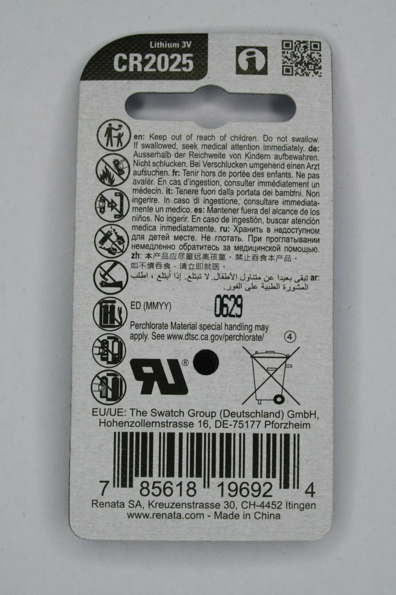 Батарейка Renata CR2025, в упаковке: 1 шт.