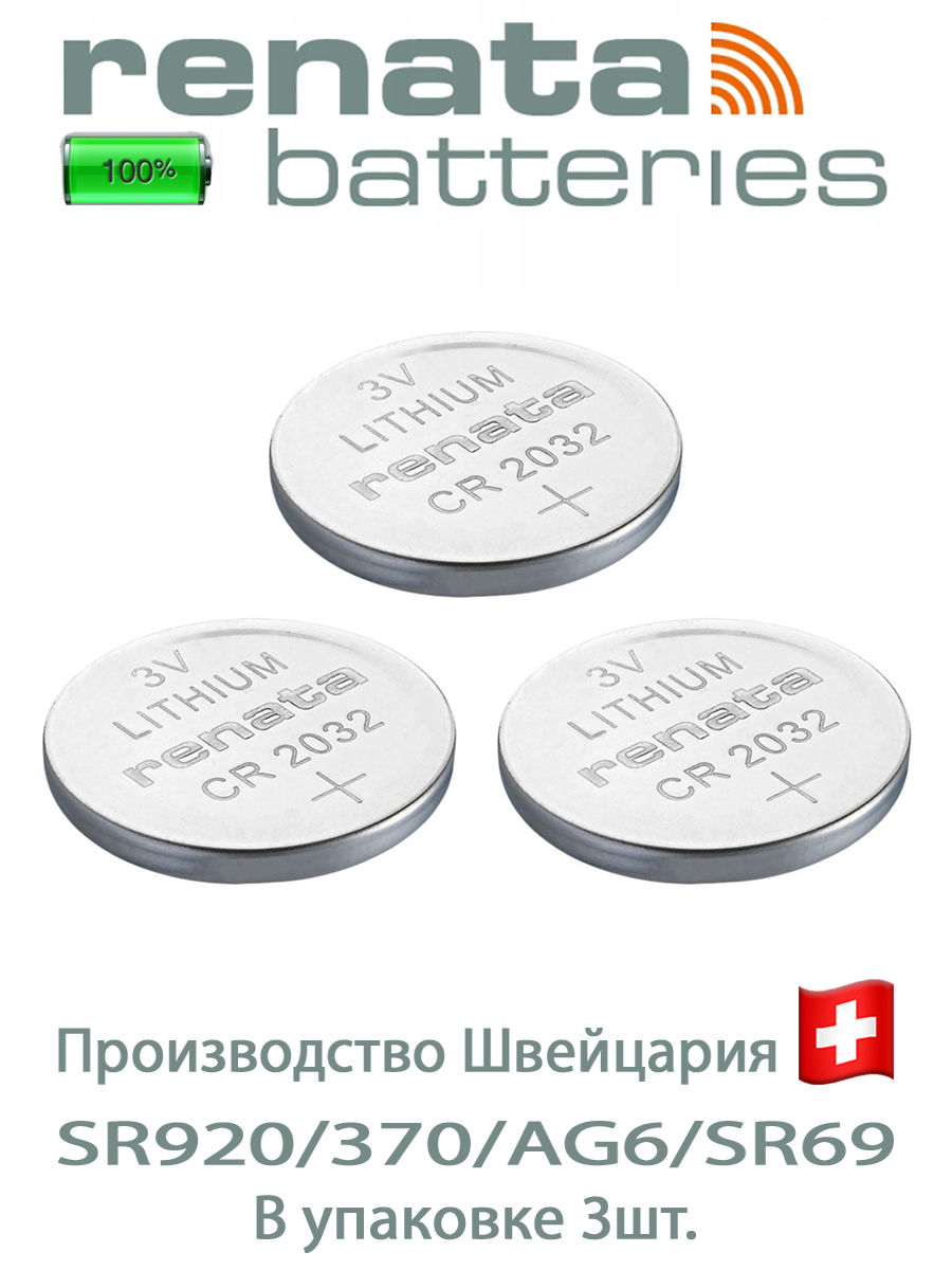 Аккумуляторная батарейка Батарейка Renata CR2032, в упаковке: 3 шт.