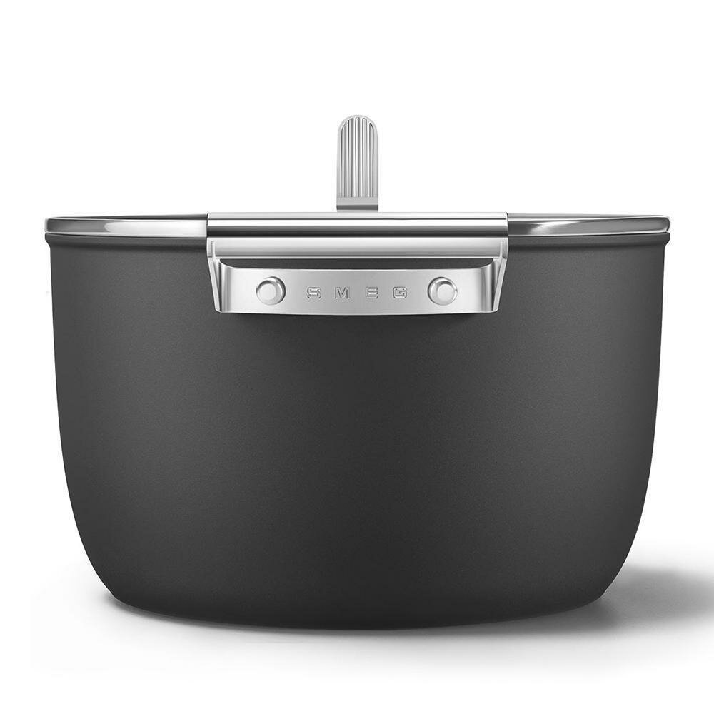 Кастрюля с двумя ручками и крышкой SMEG CKFC2611BLM / 26 см / антипригарное покрытие / черная