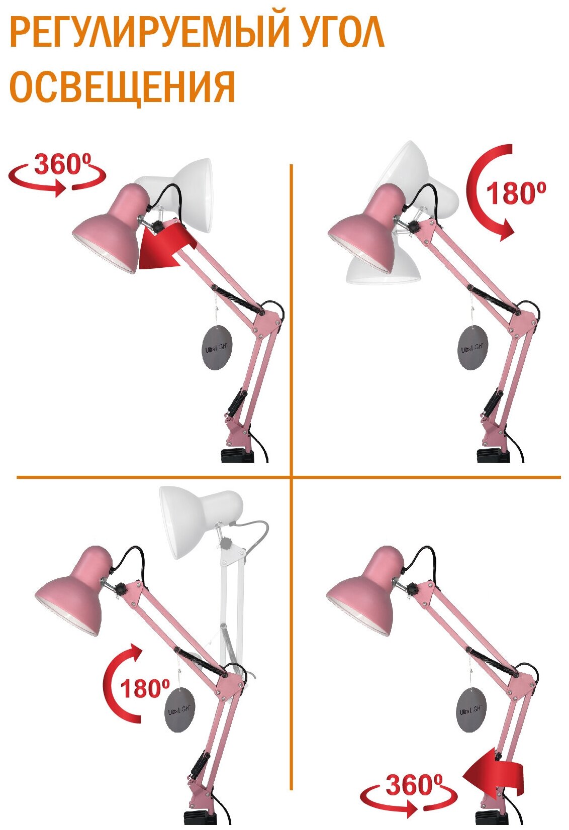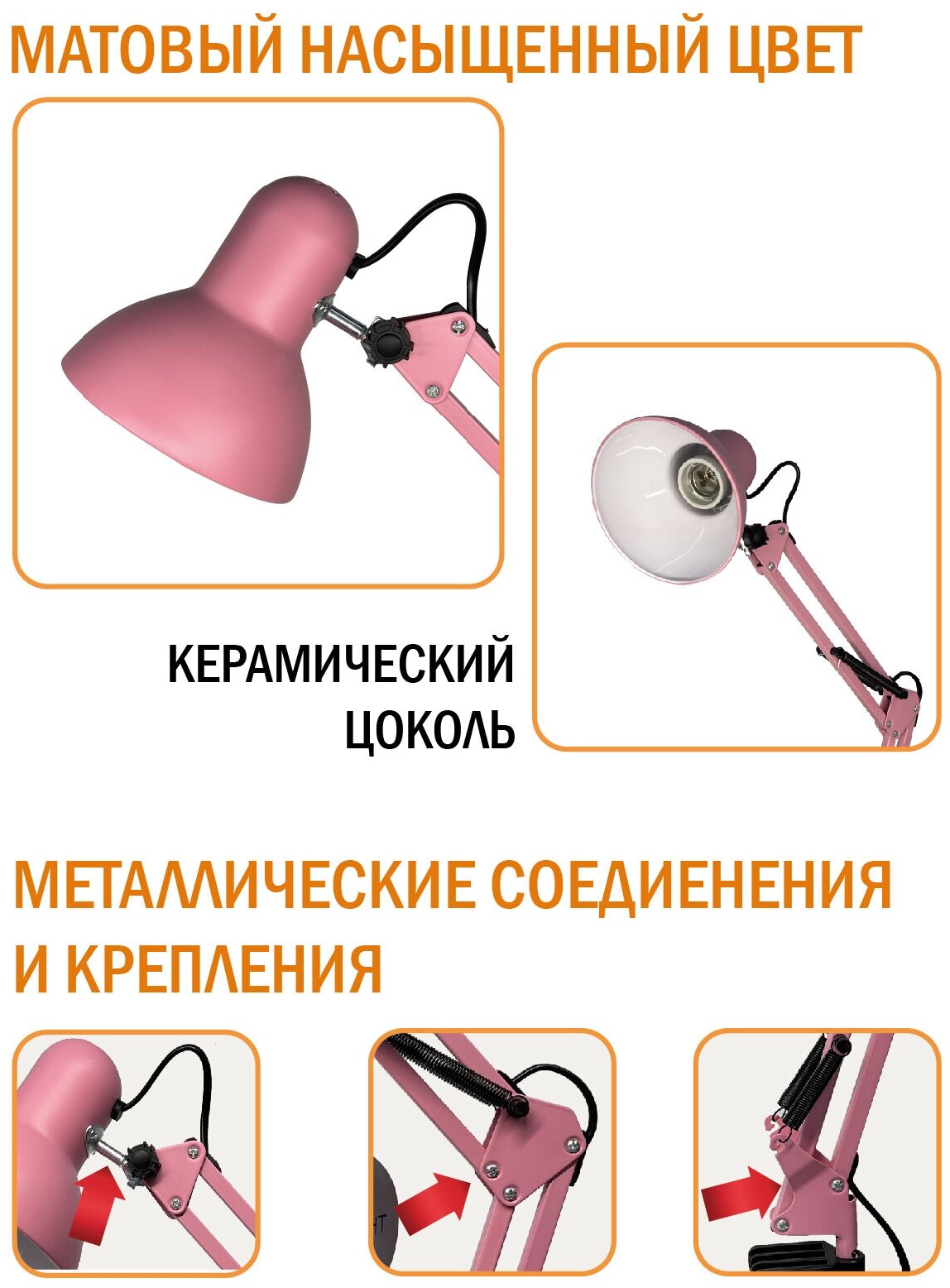 Настольный светильник Ultra LIGHT МТ2001 сменная лампа, Е27, 60 Вт Основание + струбцина, Розовый коралл