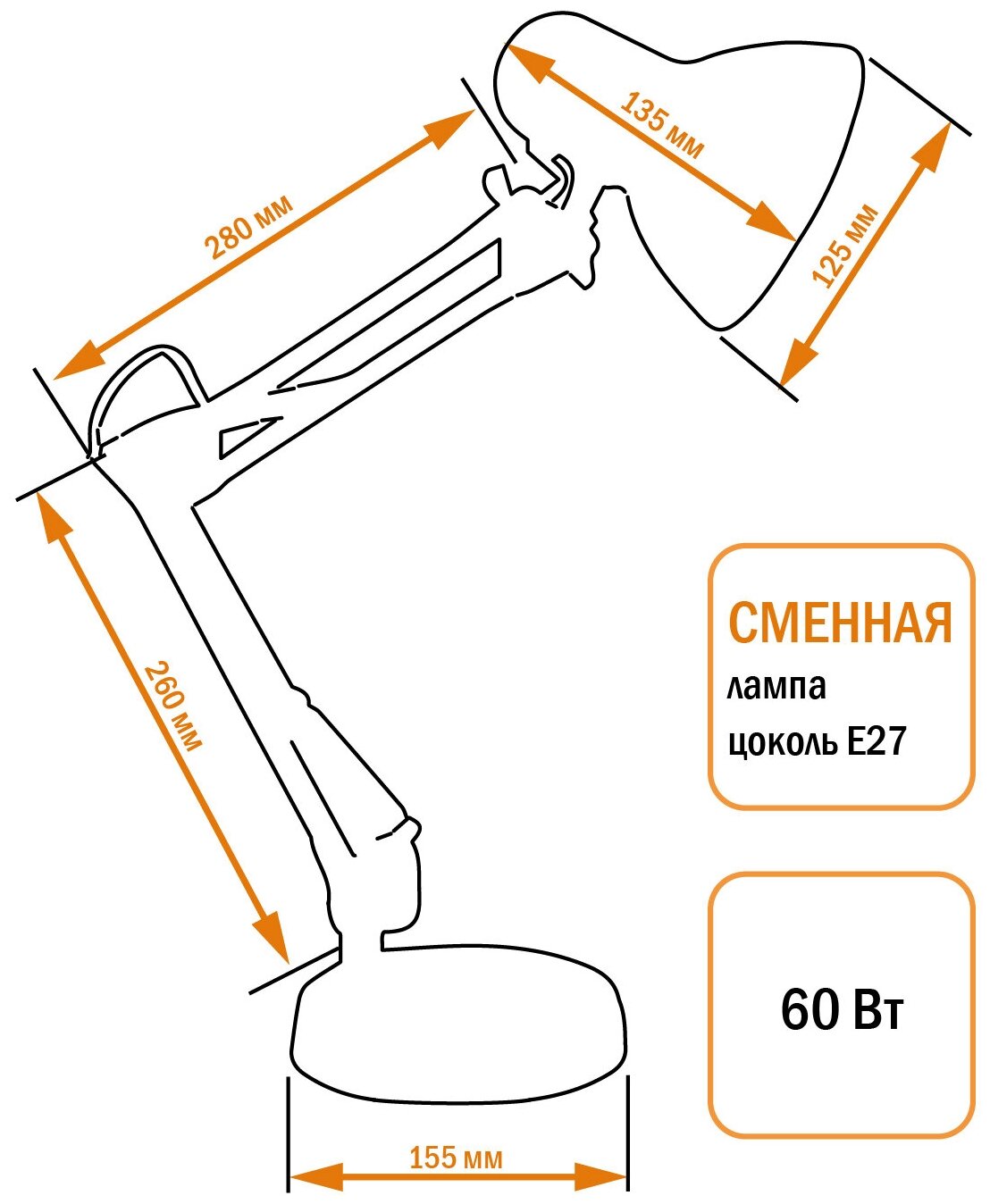 Настольный светильник Ultra LIGHT МТ2001 сменная лампа, Е27, 60 Вт Основание + струбцина, Желтая ваниль