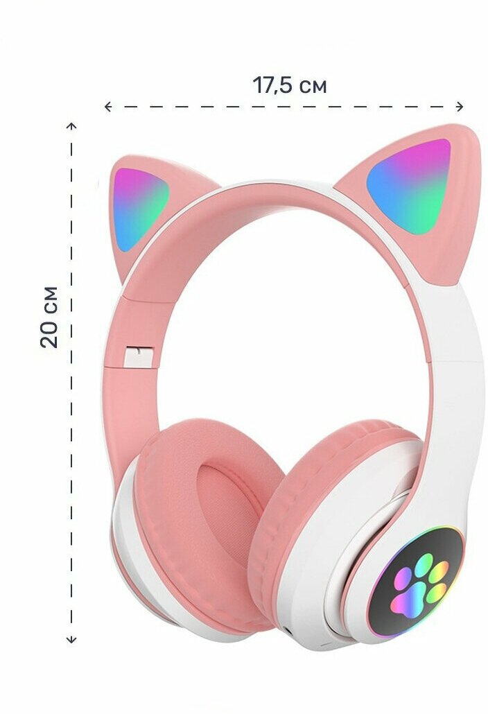 Беспроводные наушники Cat Ear P33M с bluetooth и светящимися кошачьими ушками и лапкой (розовый)