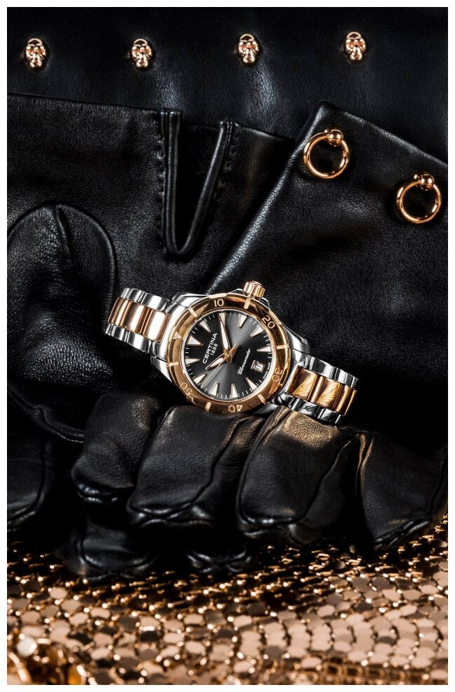 Лучшие цены. Certina DS Action Lady: Элегантность в компактном формате. Выдающиеся характеристики и элегантный дизайн в спортивном духе делают эти компактные часы надежным и стильным спутником каждого дня. Технические характеристики. Часовой механизм: Кварцевый часовой механизм ETA F04.412 PrecidriveTM Swiss Made, сертифицированный COSC. Часовая, минутная, секундная стрелки, указатель даты, индикатор окончания срока службы элемента питания. Магазины в вашем городе.