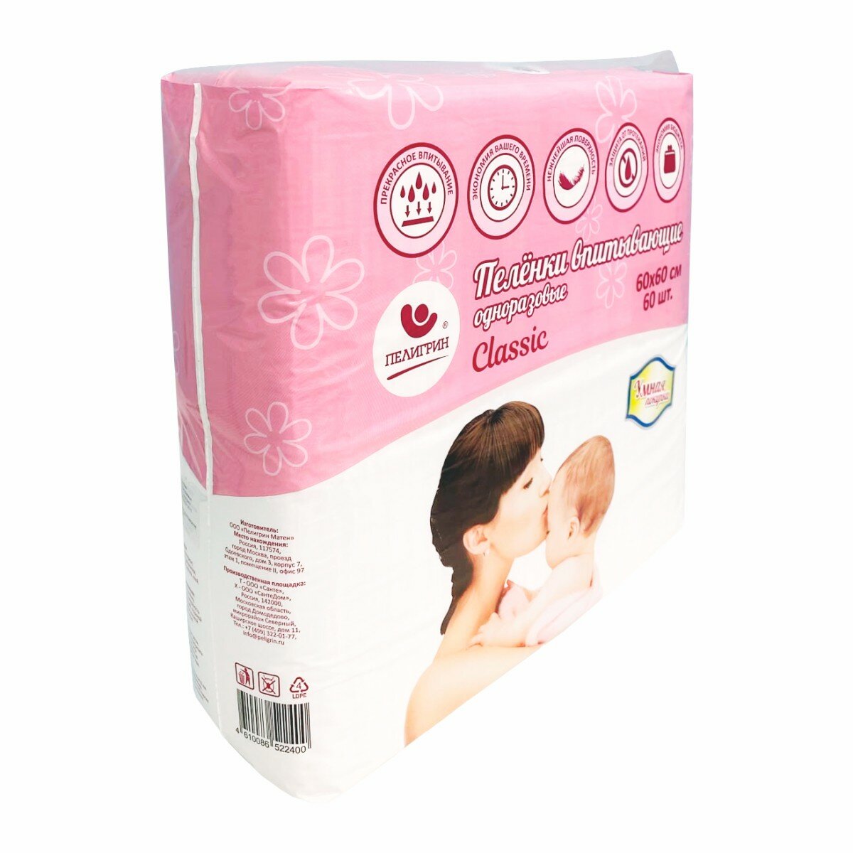 Пеленки медицинские впитывающие нестерильные «Пелигрин», «Classic», 60 шт, р 60х40 см