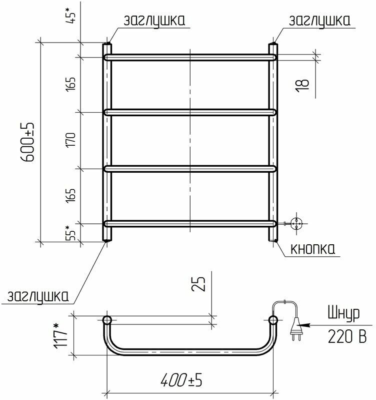 Полотенцесушители Электрический полотенцесушитель Мост с греющим кабелем ПСН-12-01