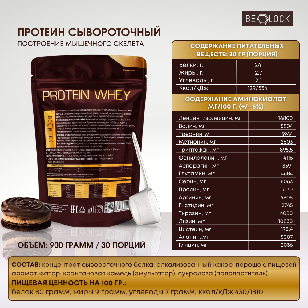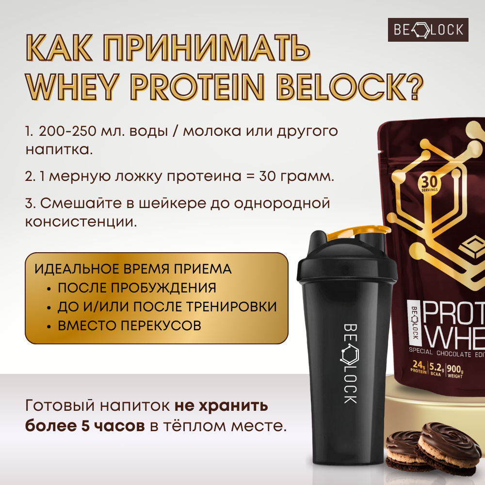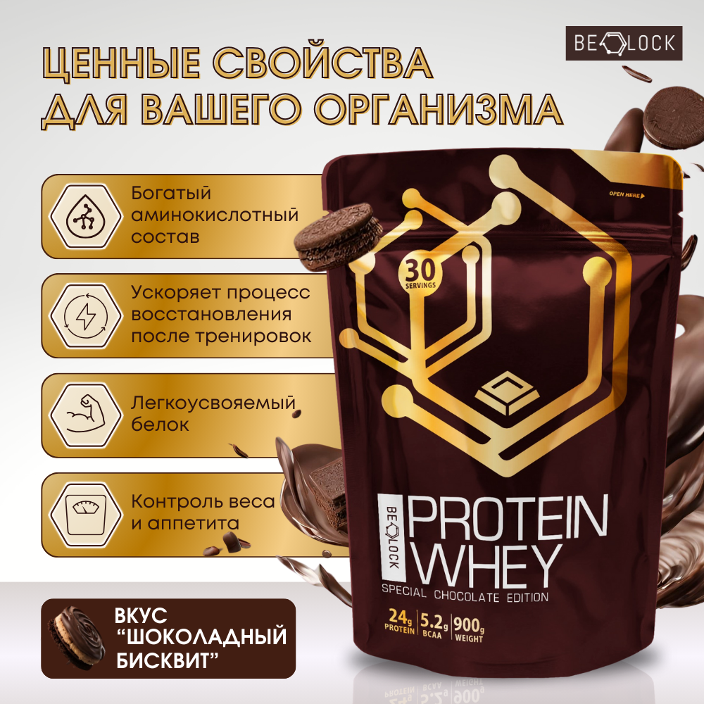 Протеины Протеин сывороточный BELOCK, whey protein, протеиновый коктейль без сахара, шоколадный бисквит, 900 гр, 30 порций