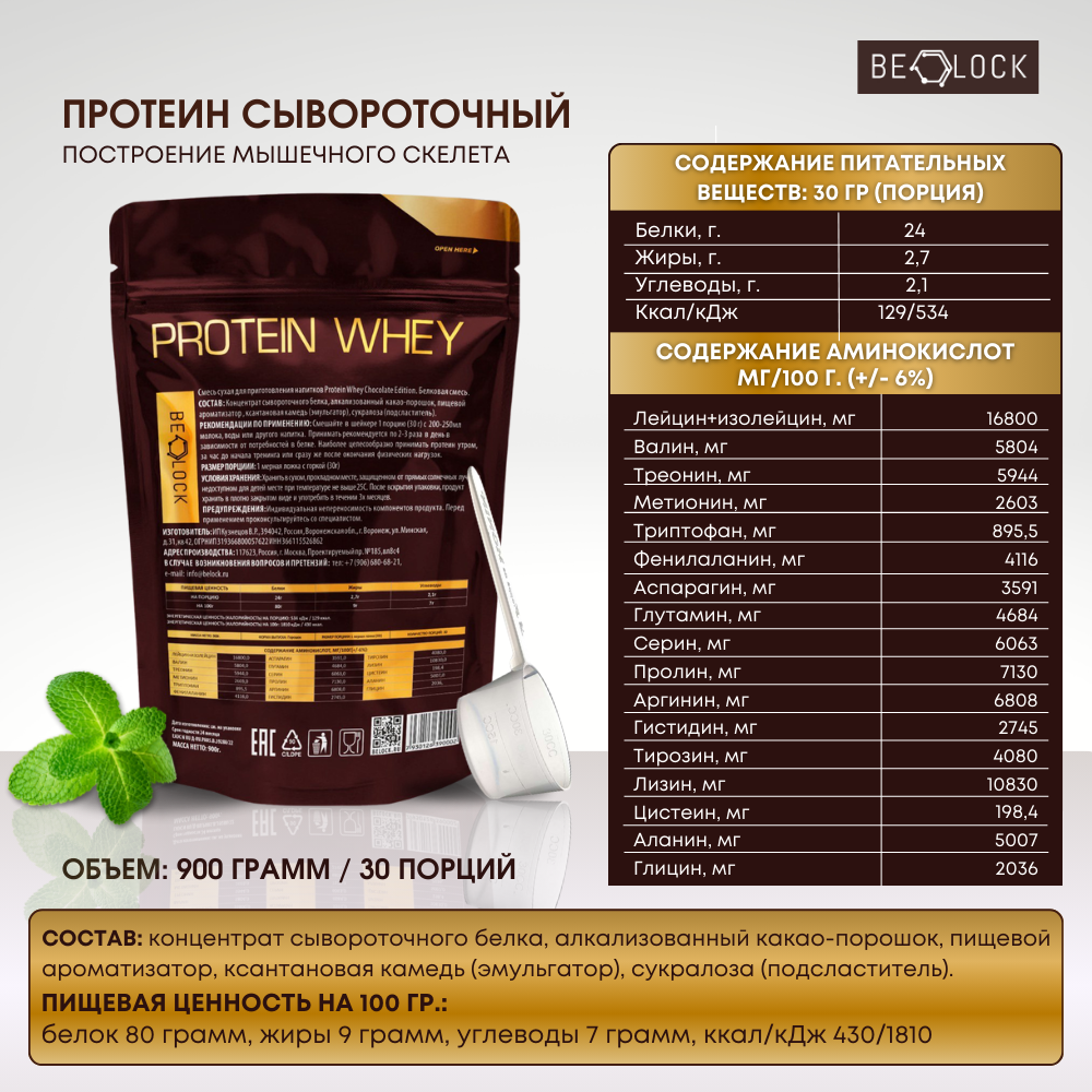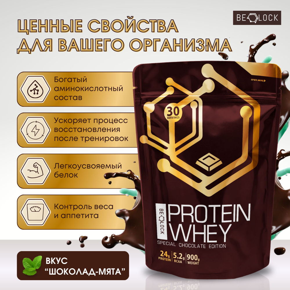 Протеины Протеин сывороточный BELOCK, whey protein, протеиновый коктейль без сахара, шоколад-мята, 900 гр, 30 порций