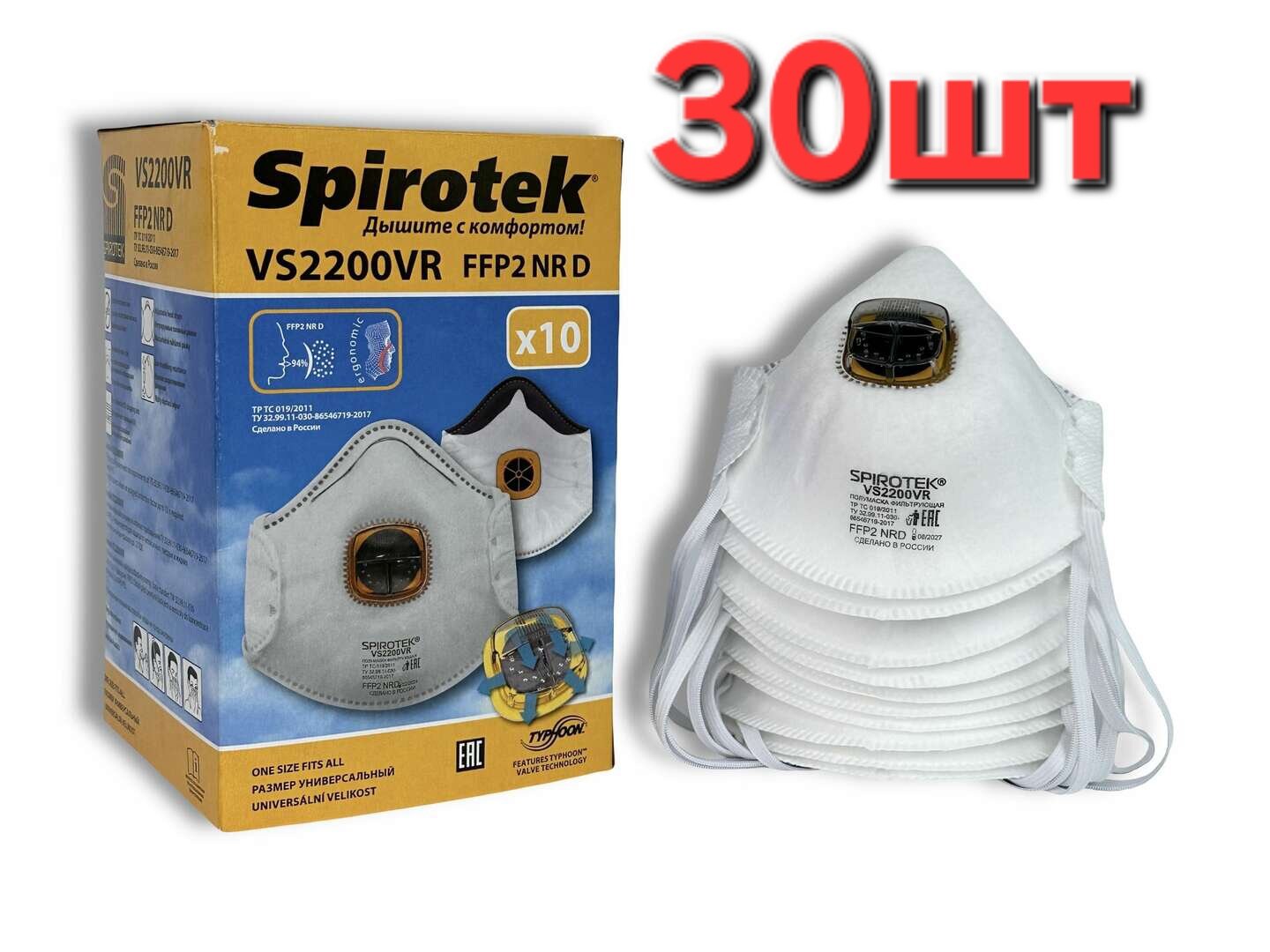 Респиратор Spirotek VS2200V, УПАКОВКА-10 штук.