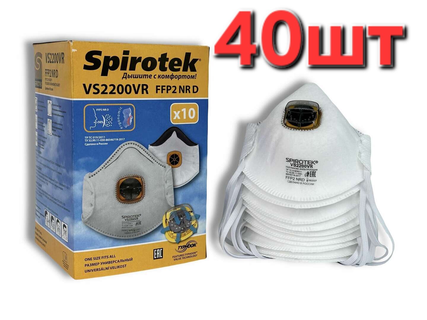 Респиратор Spirotek VS2200V, УПАКОВКА-10 штук.