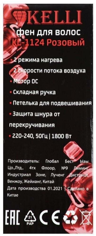 Фен Kelli KL-1124, розовый