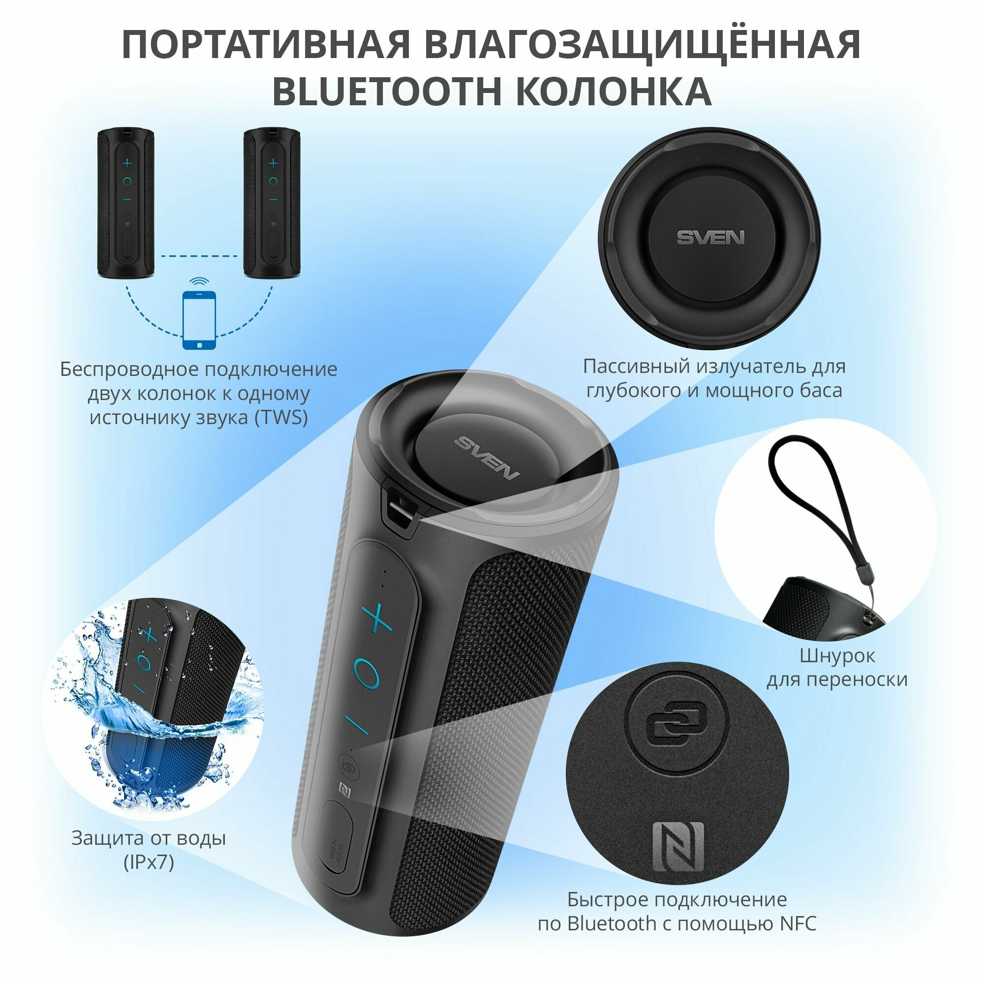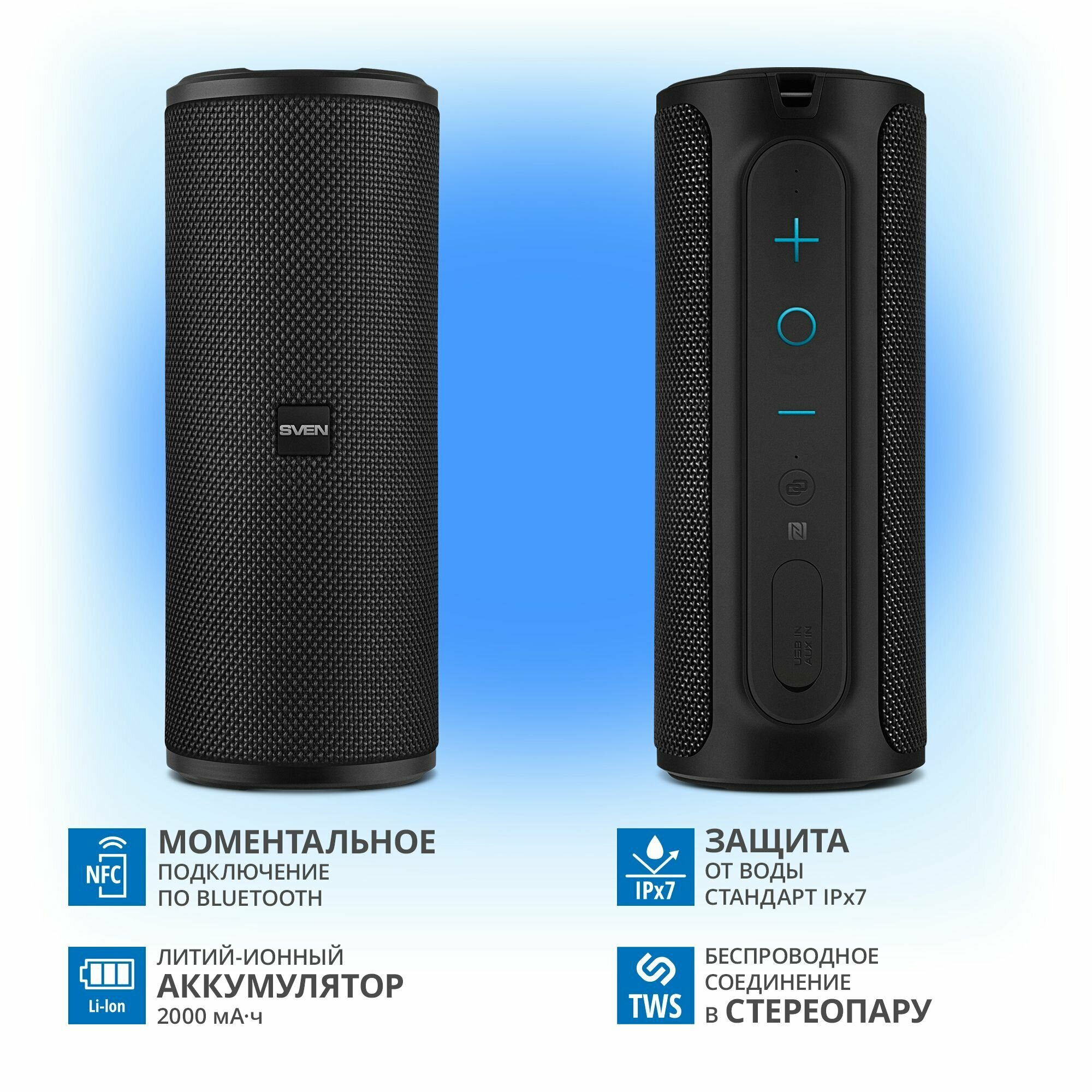 Портативная беспроводная Bluetooth колонка SVEN PS-300, черный, мощность 2x12 Вт (RMS), влагозащищённая (IPx7), TWS, встроенный аккумулятор 5 988 ₽ Подробнее