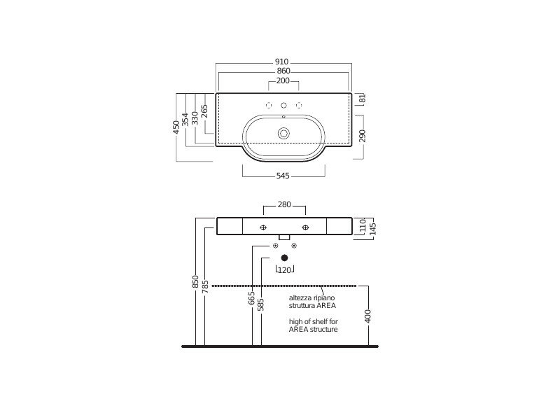Раковина подвесная HATRIA AREA YXA001, 90х45x14.5 см, с отверстием под смеситель, без донного клапана, белая глянцевая