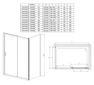 Душевой уголок Alpha VSR-3AL9014CL, 1400*900, хром, стекло прозрачное, без поддона