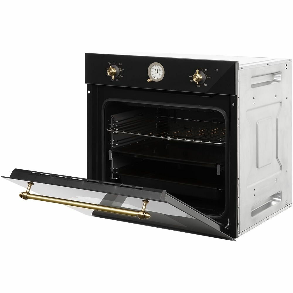 Духовой шкаф HIBERG VM 6382 BR электрический, 67 л, конвекция, гриль, ретро, черный