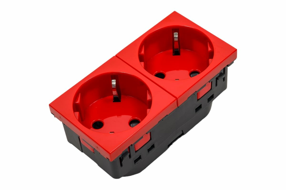 Legrand Mosaic Красный Розетка 2х2к+З Немецкий стандарт 45°, Legrand, арт.077272
