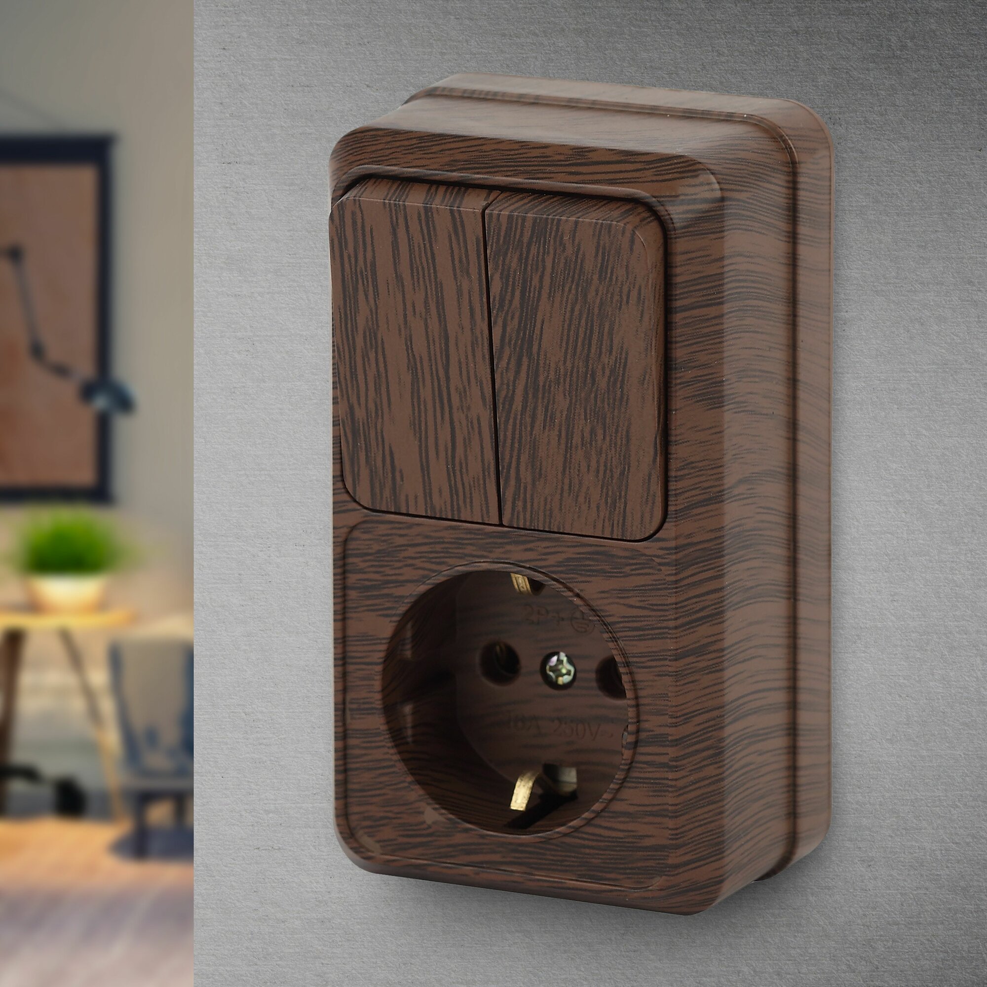 Intro Quadro Блок розетка с 2-ым выключателем вертикальный 16А-250В, IP20, ОУ, венге, Б0053895