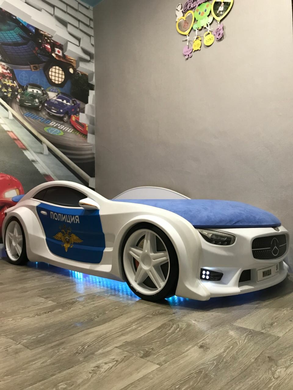 Кроватка Futuka Kids кровать-машина Neo Мерседес полиция c фарами