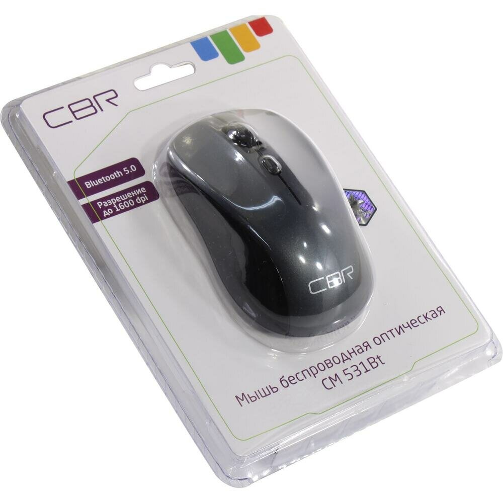 Cbr CM 531Bt Grey Blue, Мышь беспроводная, оптическая, Bluetooth 5.0, 800 1200 1600 dpi, 3 кнопки и колесо прокрутки, ABS-пластик, цвет серый-черный