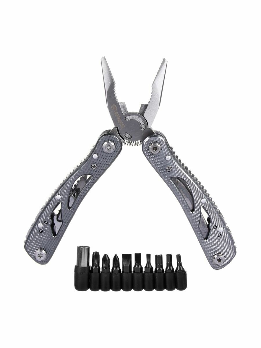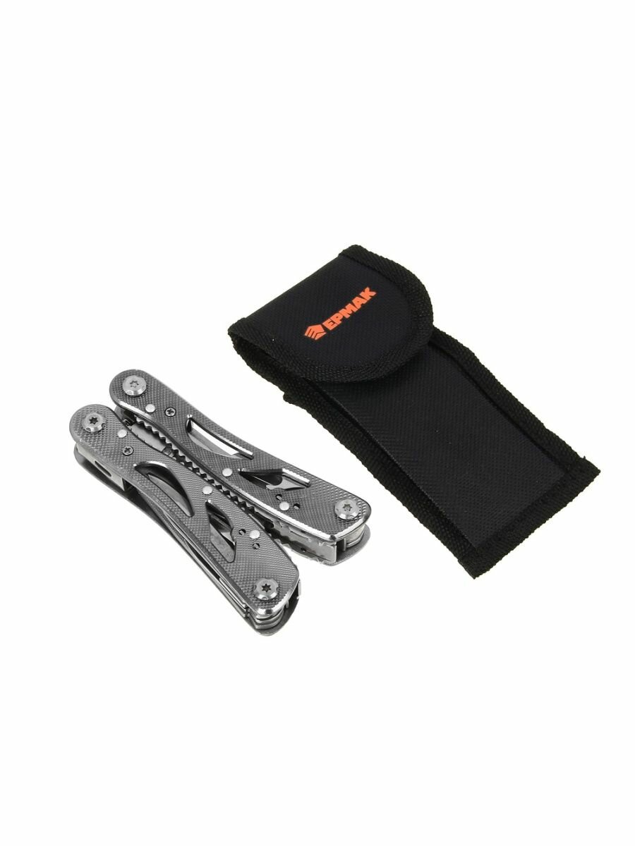 Многофункциональный инструмент ермак, 11 функций, нержавеющая сталь / Мультитул универсальный 118-169 / Нож складной, пассатижи, отвертка