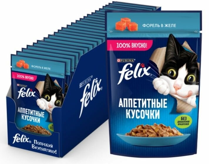 Лучшие цены. Влажный корм Паучи Пурина Феликс Аппетитные кусочки для взрослых кошек с форелью (цена за упаковку) - Влажный корм Felix Аппетитные кусочки для взрослых кошек, с форелью в желе 75 г. Чтобы Ваш питомец получил богатейшую палитру ощущений вкуса и аромата, эксперты Purina создали влажный корм для взрослых кошек Felix «Sensations». Влажные корма для кошек Felix, созданные из высококачественных ингредиентов с заботливо приготовленными нежными кусочками в аппетитном желе подарят Вашему любимцу потрясающие. Магазины в вашем городе.