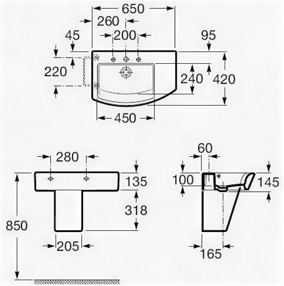 Hall 65х42х14,5см, подвесная раковина, санфарфор, с отв. под смеситель, асимметричная, арт. 327620000, Roca