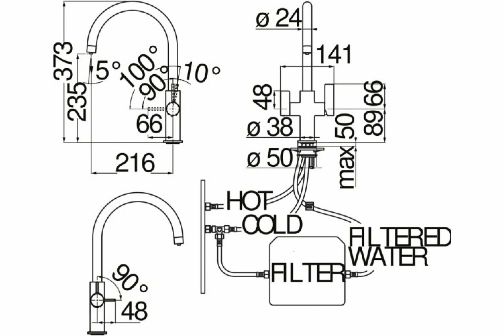 | Подвод воды | шланги / 350 мм / G 3/8" |
