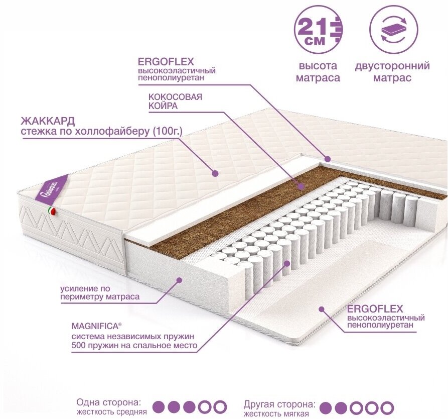 Матрас пружинный Delicatex Evolution, средне-мягкий, 180x200х21 см, ролл в скрутке