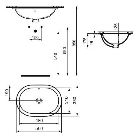 Лучшие цены. Прямоугольная раковина Ideal Standard Connect 60 E794501. Характеристики: - Цвет: белый. - Материал: санфарфор. - Форма: овальная. - Стиль: современный. - Габариты (ШхВхГ): 550х175х380 мм. - Глубина чаши: 125 мм. - Диаметр слива: 45 мм. - Монтаж: под столешницу. В комплекте поставки: - Раковина. - Монтажный шаблон. - Крепеж. Магазины в вашем городе.