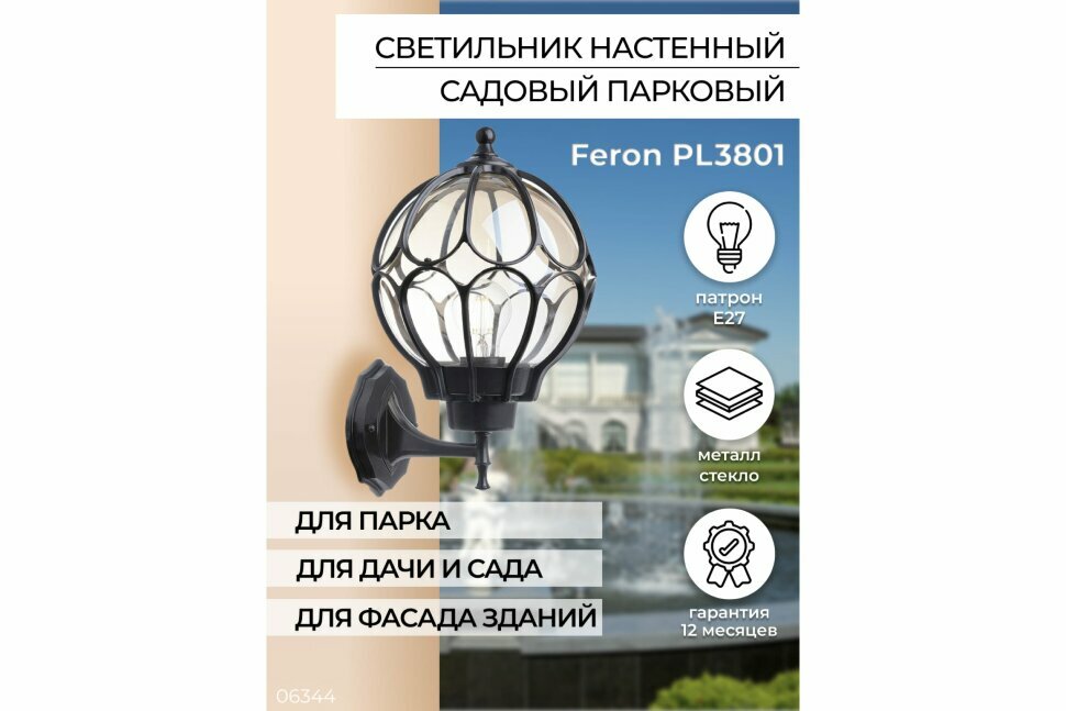 Светильник уличный Feron PL3801, 06344, 60W, E27
