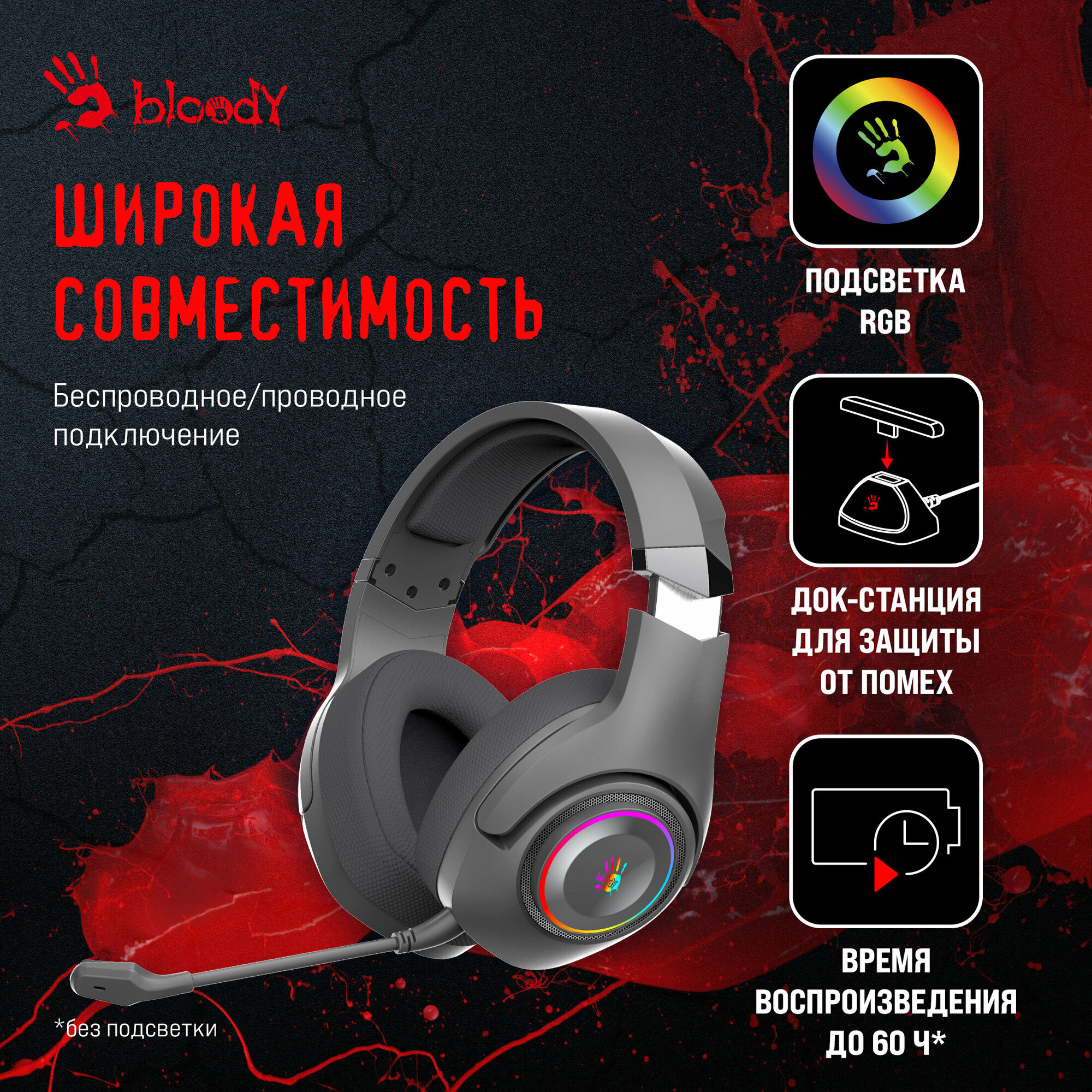 Наушники Гарнитура игровая A4TECH Bloody GR270, для компьютера и игровых консолей, мониторные, Bluetooth/радио, черный